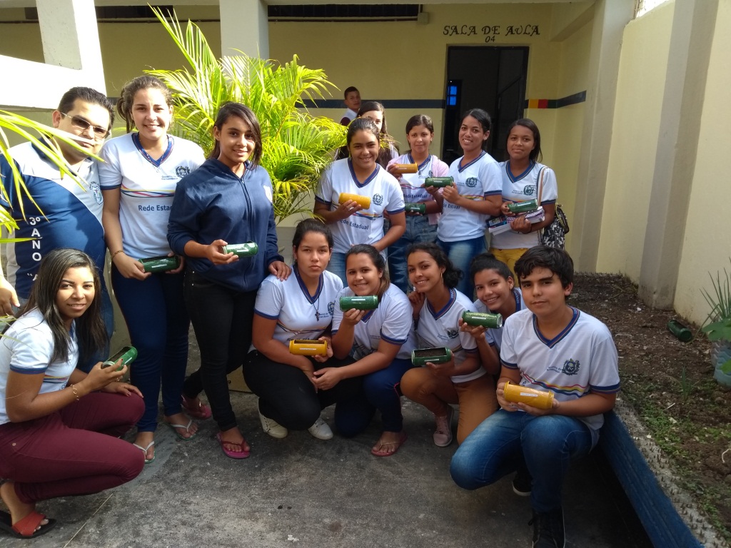 Estudantes dos 1º anos da disciplina eletiva "Educação Ambiental", sob a orientação do Professor Gustavo Luís, realizaram pesquisa, confeccionaram os vasos com material reciclável (latinhas metálicas) e plantaram verduras e hortaliças em uma horta vertical suspensa no ambiente interno da escola.